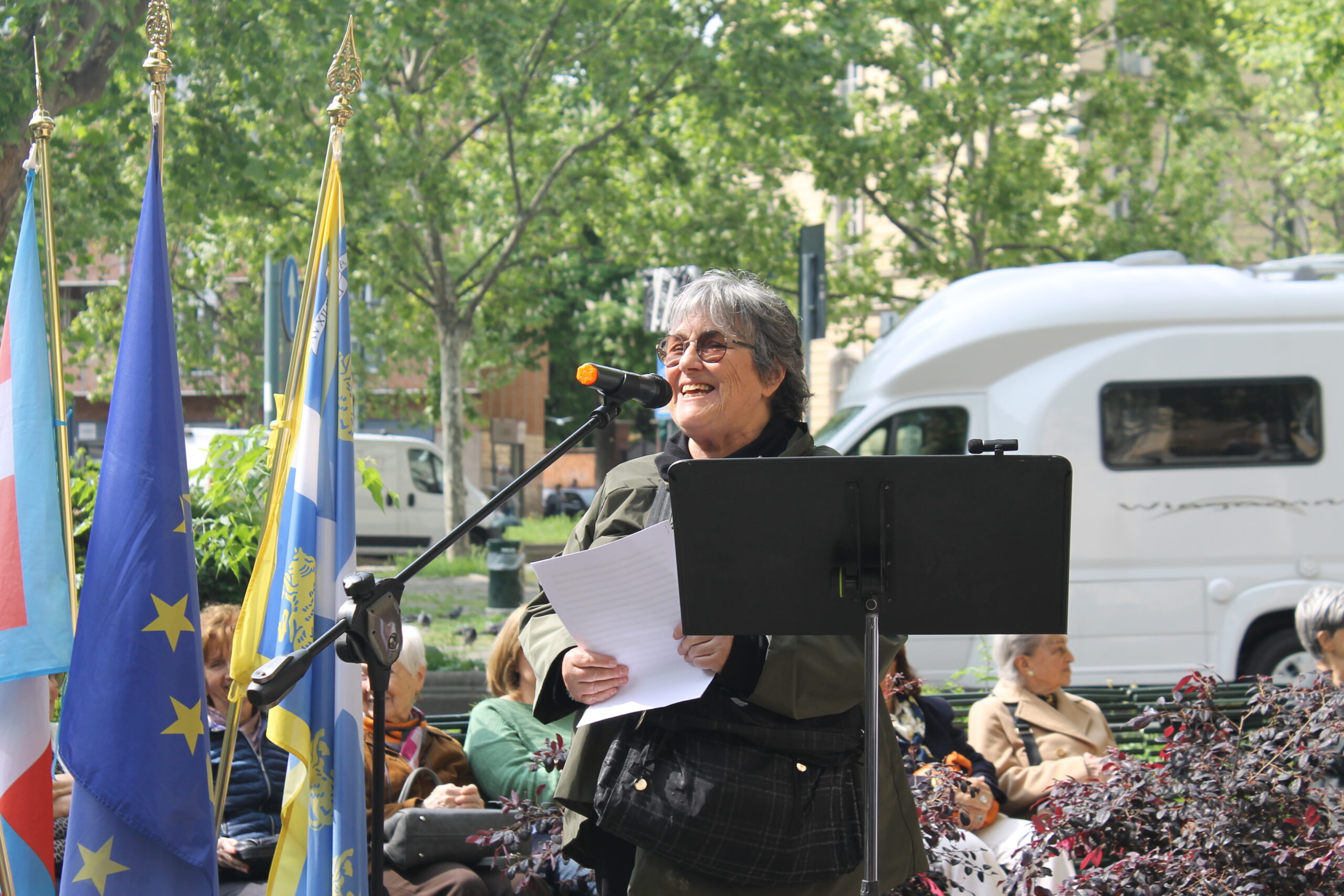 Conclusa la cerimonia istituzionale, alcune studentesse del Liceo Berti si sono fermate in piazza per leggere brani tratti dagli scritti di Giuliana Fiorentino Tedeschi, “Da questo povero corpo” e “C’è un punto della terra” rendendo omaggio alla sua voce e alla sua testimonianza.