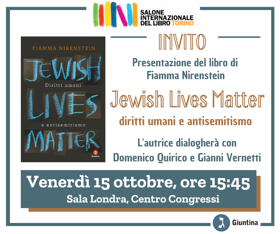 Nell’ambito del Salone Internazionale del libro presentazione del libro  “Jewish Lives Matter – diritti umani e antisemitismo” di Fiamma Nirenstein. L’autrice dialogherà con Domenico Quirico e Gianni Vernetti.