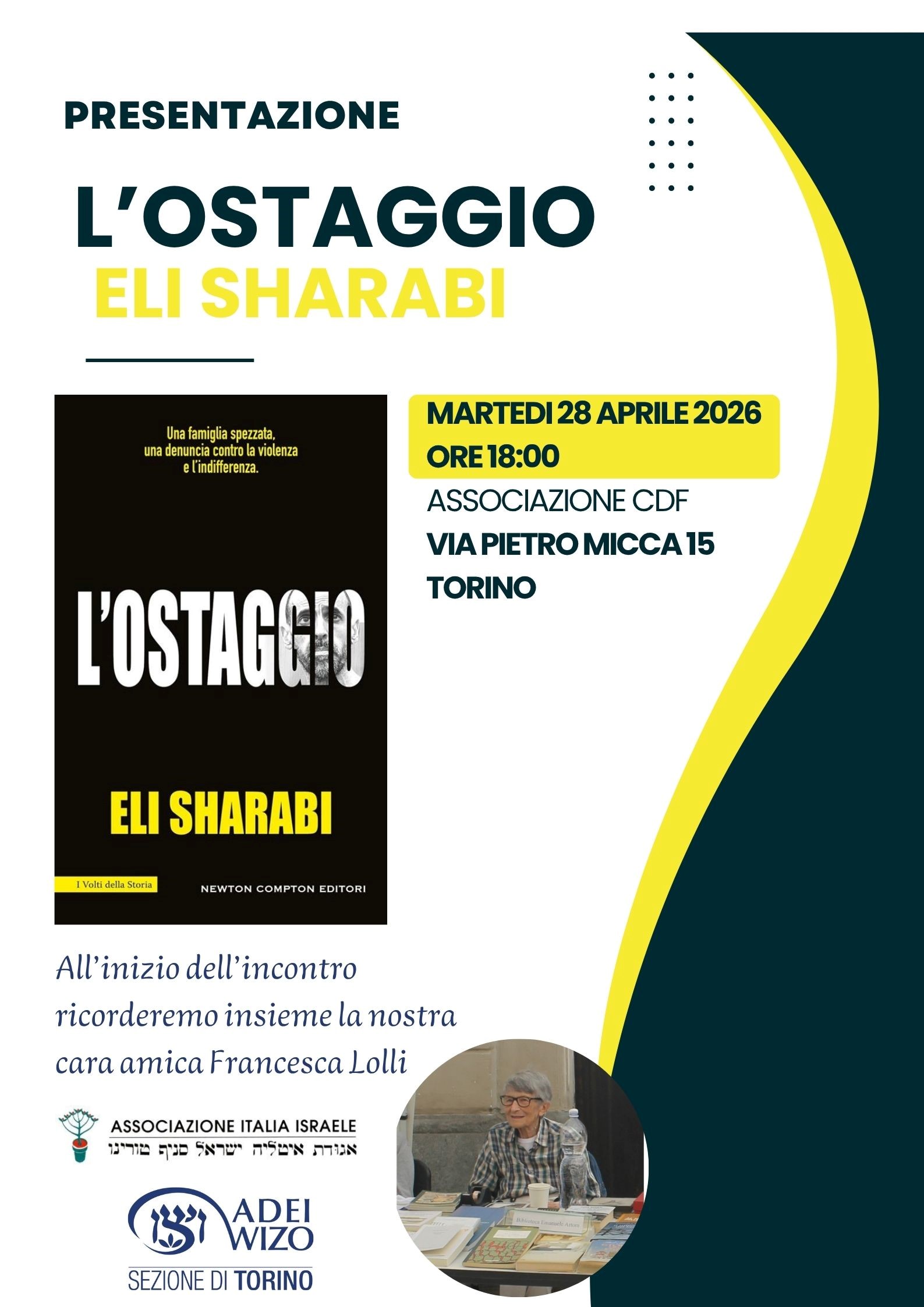 All’inizio della presentazione, con la sezione di Torino di ADEI WIZO, ricorderemo Francesca Lolli, scomparsa lo scorso 9 aprile.