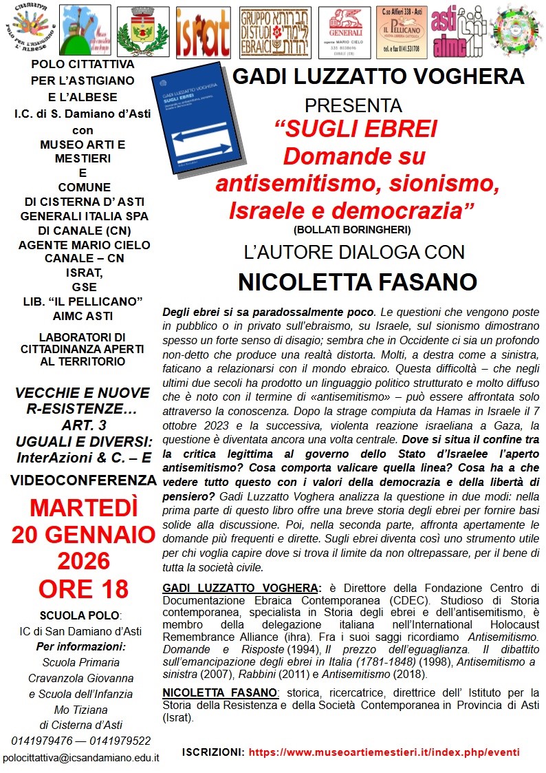 GADI LUZZATTO VOGHERA: è Direttore della Fondazione Centro di Documentazione Ebraica Contemporanea (CDEC). Studioso di Storia contemporanea, specialista in Storia degli ebrei e dell’antisemitismo, è membro della delegazione italiana nell’International Holocaust Remembrance Alliance (ihra). Fra i suoi saggi ricordiamo Antisemitismo. Domande e Risposte (1994), Il prezzo dell’eguaglianza. Il dibattito sull’emancipazione degli ebrei in Italia (1781-1848) (1998), Antisemitismo a sinistra (2007), Rabbini (2011) e Antisemitismo (2018).
