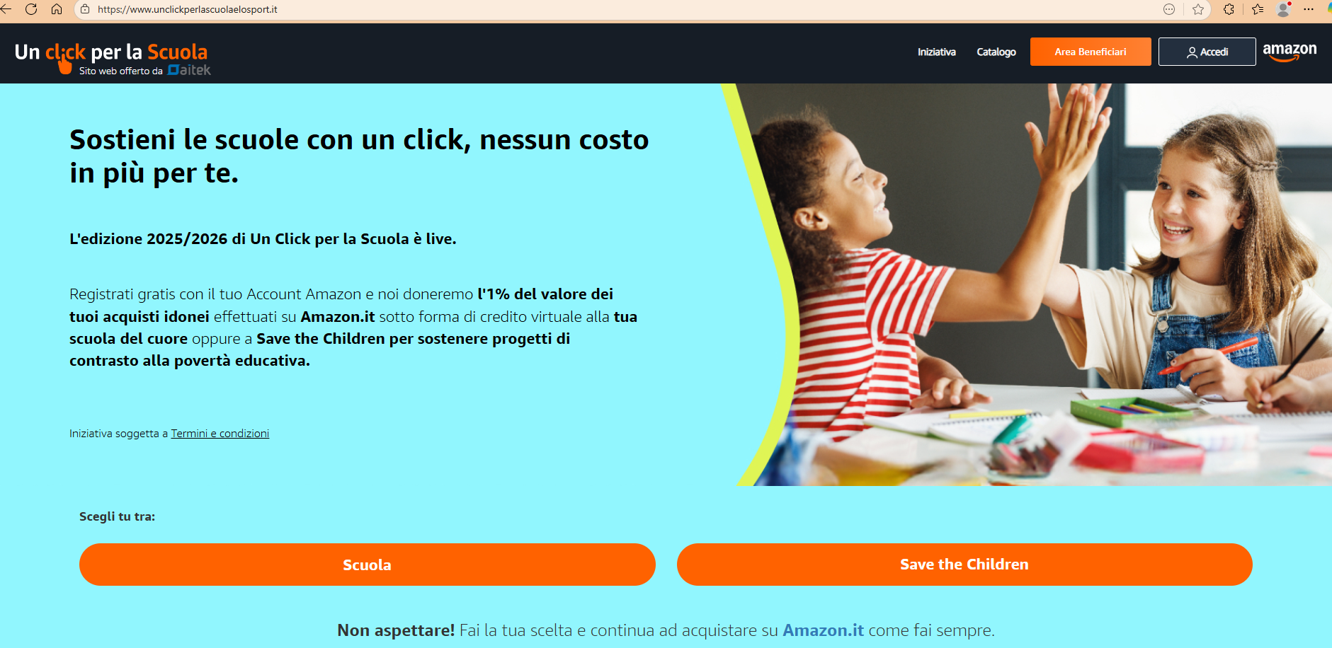 Anche per quest'anno su Amazon attiva la raccolta "Un click per la Scuola"